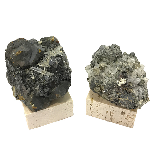 クォーツ水晶(Quartz)/パイライト(Pyrite) 台:大理石
